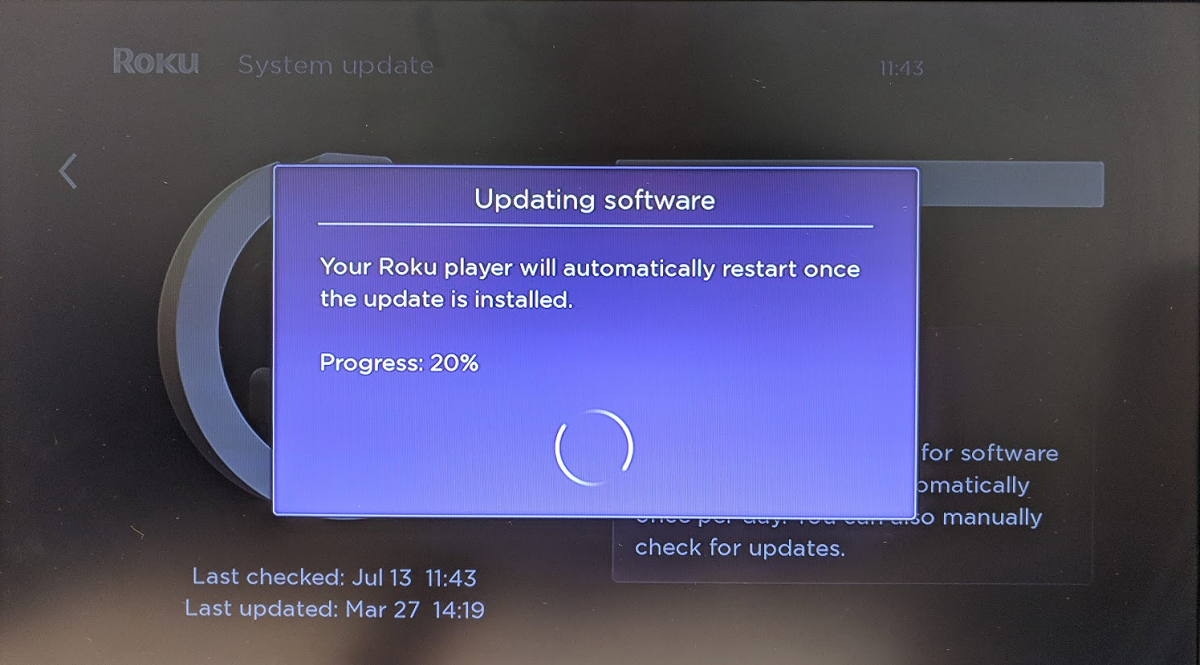- If there is new software available or there are updates for your channels, then your Roku player will download and install them automatically and once completed, your Roku player will reboot.